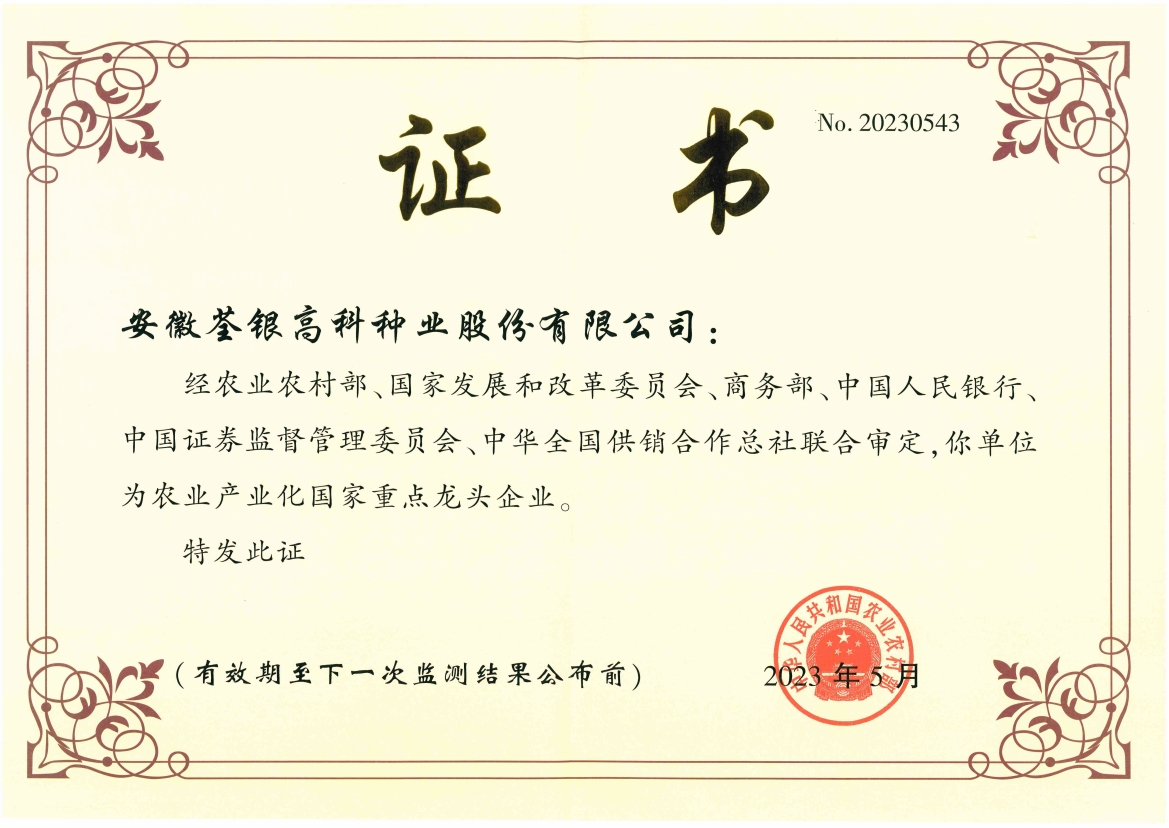 2025年07月安徽荃銀高科種業(yè)股份有限公司是一家“以種業(yè)為核心、農(nóng)業(yè)服務(wù)為延伸、探索和創(chuàng)新農(nóng)業(yè)多元化發(fā)展”的現(xiàn)代高科技種業(yè)上市公司,證券代碼:300087。公司注冊(cè)資金9.47億元,系“中國(guó)種業(yè)領(lǐng)軍企業(yè)、農(nóng)業(yè)產(chǎn)業(yè)化國(guó)家重點(diǎn)龍頭企業(yè)、國(guó)家高新技術(shù)企業(yè)、農(nóng)業(yè)部首批農(nóng)作物種子育繁推一體化企業(yè)、中國(guó)種業(yè)信用明星企業(yè)"。在國(guó)內(nèi)控股子公司20多家,在國(guó)外設(shè)立分支機(jī)構(gòu)4家,良種銷(xiāo)售至全國(guó)20多個(gè)省(市、區(qū)),出口覆蓋20多個(gè)國(guó)家與地區(qū),種業(yè)綜合實(shí)力、雜交水稻研發(fā)、推廣及海外業(yè)務(wù)規(guī)模均居全國(guó)種子企業(yè)前2位。