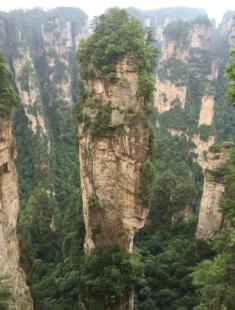 8日早上,我們乘坐“世界第一梯”——百龍?zhí)焯葜猎医绶屙?,這里是舉世聞名,奇特罕見的砂巖地貌。舉目遠望,三千奇峰盡收眼底,怪石嶙峋,星羅棋布,雄險秀野,神態(tài)各異。峽谷深處,千百根石峰石柱奇?zhèn)ネ涣ⅰ>椭?,如英武將帥;嵯峨之峰,似勇猛壯士。天氣陰沉,下起小雨,此時,峰谷內(nèi)云翻霧涌,數(shù)座山峰如中流砥柱巋然屹立于云霧之中,云海淼淼,如入蓬萊仙境,那里面一定住著神仙吧。