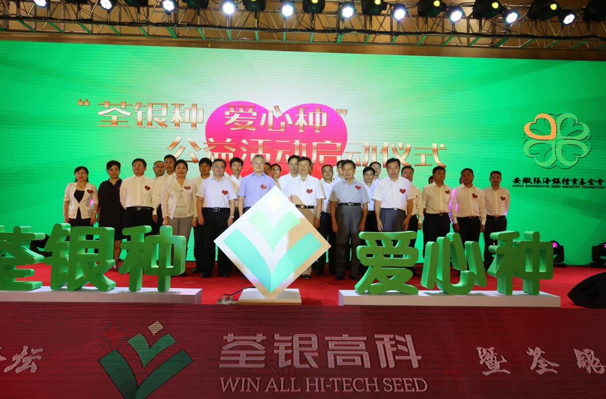 農(nóng)業(yè)部種子管理局張延秋局長(zhǎng)、中國(guó)種子協(xié)會(huì)蔣協(xié)新副會(huì)長(zhǎng)、中科院韓斌院士、安徽省農(nóng)委朱永東副主任、基金會(huì)張海銀理事長(zhǎng)、荃銀高科張琴董事長(zhǎng),以及荃銀高科經(jīng)營(yíng)班子成員、所屬控股子(分)公司負(fù)責(zé)人共同見(jiàn)證并將愛(ài)心種子放入愛(ài)心池,“荃銀種、愛(ài)心種”的公益活動(dòng)正式啟動(dòng)。