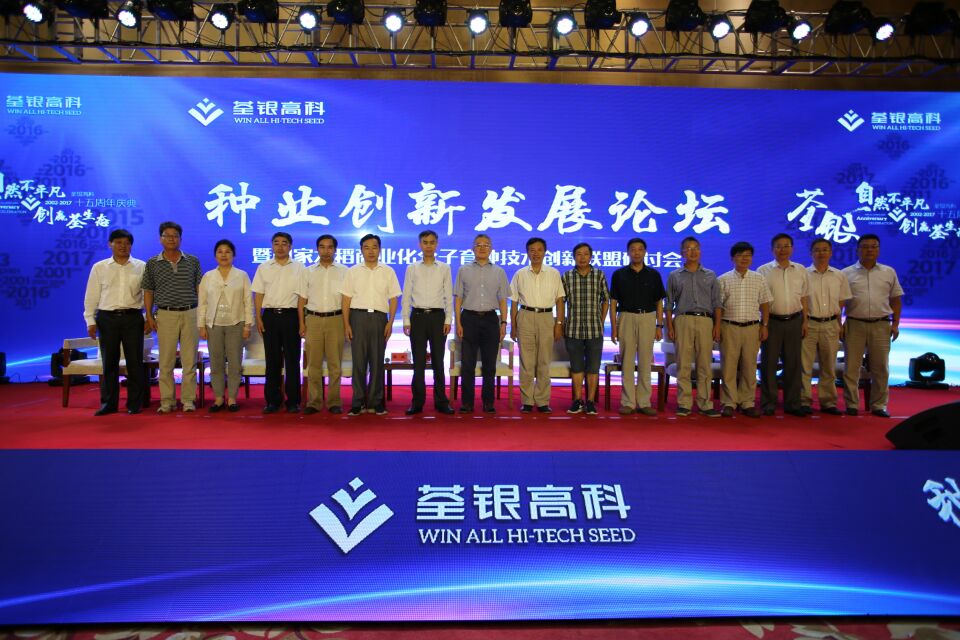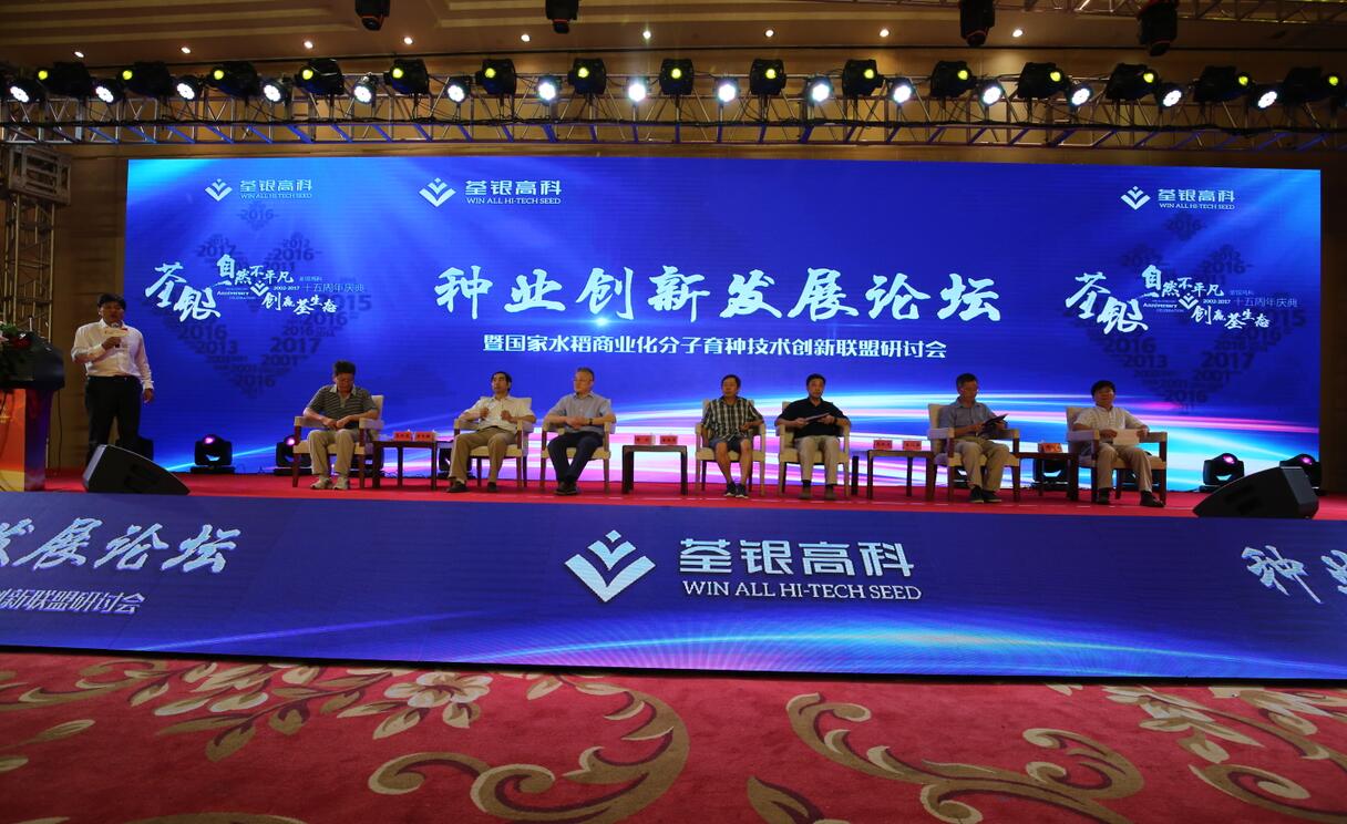 十五載風(fēng)雨兼程,十五載春華秋實(shí)!2017年8月29日,科企合作戰(zhàn)略簽約儀式·種業(yè)創(chuàng)新發(fā)展論壇暨荃銀高科成立15周年慶典大會(huì)在合肥隆重舉行。農(nóng)業(yè)部種子局局長(zhǎng)張延秋,農(nóng)業(yè)部科教司司長(zhǎng)廖西元,中國(guó)科學(xué)院院士、國(guó)家基因研究中心主任、上海植生生態(tài)所所長(zhǎng)韓斌,中國(guó)種子協(xié)會(huì)副會(huì)長(zhǎng)兼秘書(shū)長(zhǎng)蔣協(xié)新,安徽省科技廳廳長(zhǎng)宛曉春,安徽省農(nóng)業(yè)委員會(huì)副主任周世其、朱永東,“中國(guó)種業(yè)十大功勛人物”、荃銀高科創(chuàng)始人、安徽張海銀基金會(huì)理事長(zhǎng)張海銀先生,以及來(lái)自農(nóng)業(yè)部、中國(guó)種子協(xié)會(huì)和省、市有關(guān)部門(mén)的領(lǐng)導(dǎo)、專(zhuān)家、嘉賓,國(guó)家水稻商業(yè)化分子育種技術(shù)創(chuàng)新聯(lián)盟的科學(xué)家,戰(zhàn)略合作簽協(xié)單位代表,種業(yè)界同仁,還有來(lái)自印度尼西亞、孟加拉、巴基斯坦、越南等國(guó)家的20多位外賓朋友,計(jì)500多人參加了此次活動(dòng)。