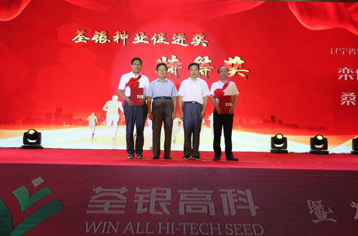 (中國(guó)種子協(xié)會(huì)副會(huì)長(zhǎng)兼秘書(shū)長(zhǎng)蔣協(xié)新與安徽張海銀種業(yè)基金會(huì)理事長(zhǎng)張海銀為“荃銀種業(yè)促進(jìn)獎(jiǎng)”特等獎(jiǎng)獲得者鐵嶺市農(nóng)科院欒化泉研究員、桑立君研究員頒獎(jiǎng))