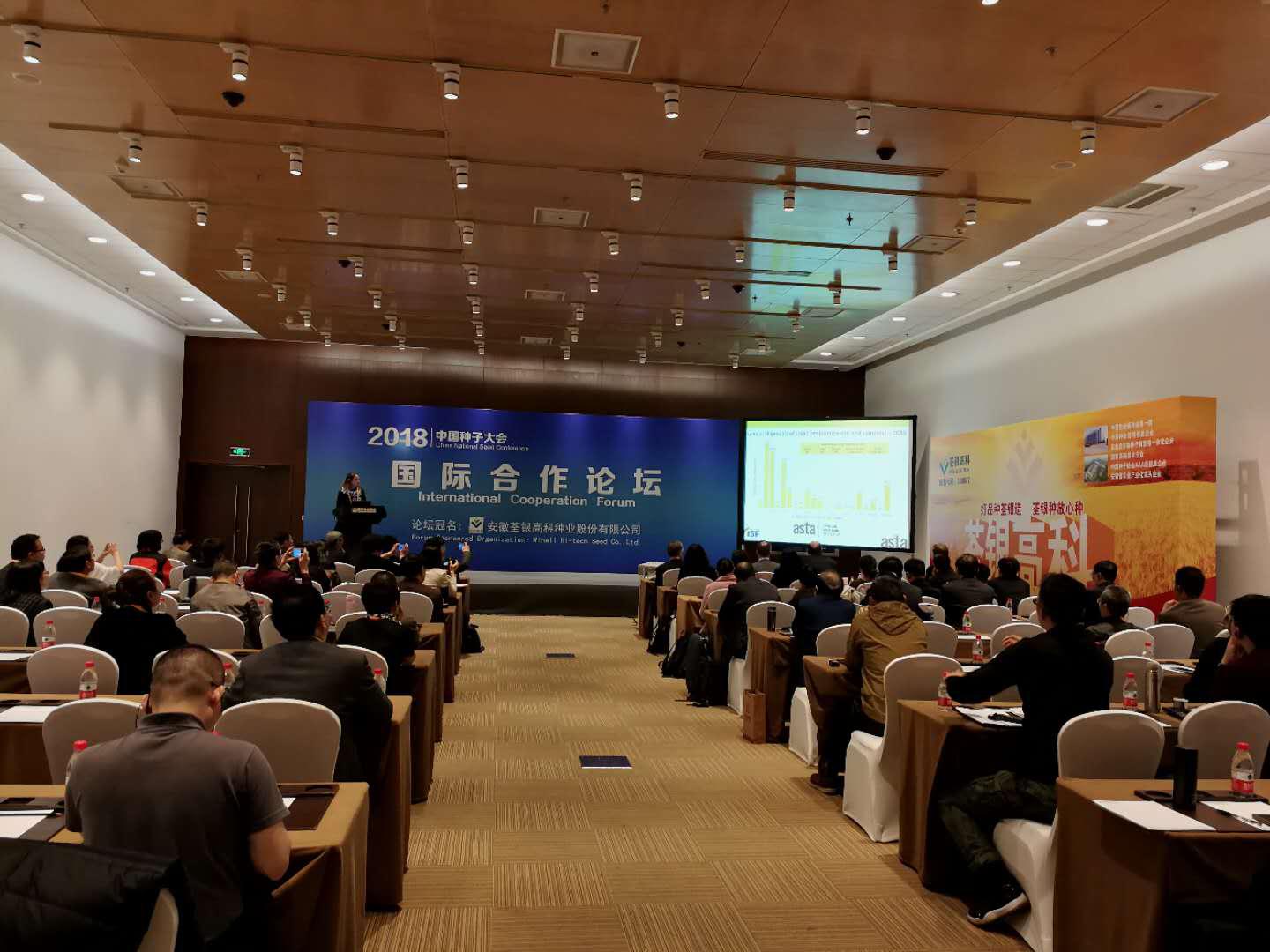 ? ?2018年3月25-27日,由中國種子協(xié)會主辦的首屆中國種子大會在北京國家會議中心舉行,大會共吸引了近700名種業(yè)界人士參加,其中還包括來自美國、印度、印度尼西亞等國家的國際種業(yè)人士。荃銀高科應(yīng)邀參會并布展,公司張琴董事長作為中國種子協(xié)會副會長、國際合作分會會長主持國際合作論壇。