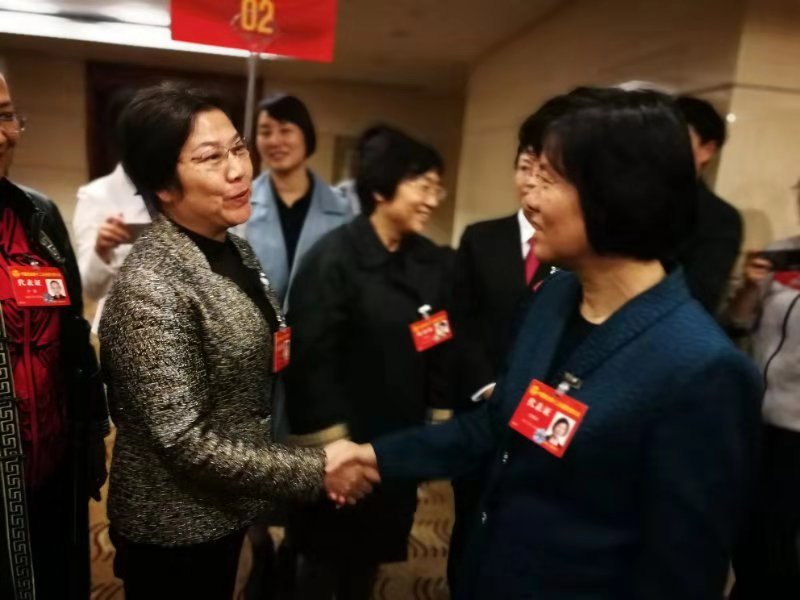 全國人大常委會副委員長、全國婦聯(lián)主席沈躍躍與張琴董事長親切交談