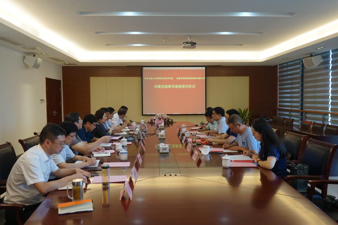 ??? 2019年8月12日,華中農(nóng)業(yè)大學(xué)校黨委常委、組織部長(zhǎng)李向東,植物科學(xué)技術(shù)學(xué)院黨委書記周雄,植物科學(xué)技術(shù)學(xué)院院長(zhǎng)嚴(yán)建兵一行蒞臨荃銀高科,雙方簽署荃銀高科國(guó)際合作班建設(shè)協(xié)議并座談交流,荃銀高科副董事長(zhǎng)、總經(jīng)理張琴,副總經(jīng)理、首席技術(shù)官、荃銀農(nóng)科院院長(zhǎng)張從合,副總經(jīng)理朱全貴等領(lǐng)導(dǎo)熱情接待了李向東常委一行。