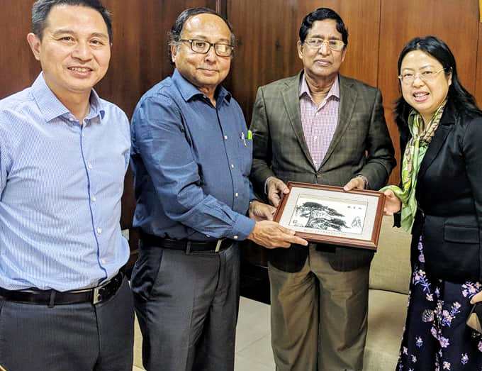 ??? 會(huì)見伊始,拉扎克部長(zhǎng)對(duì)荃銀高科一行來訪表示熱烈歡迎,在聽取了荃銀高科過去十多年間在孟加拉推廣雜交水稻與優(yōu)質(zhì)蔬菜等農(nóng)作物良種、開展本土化品種選育和種子生產(chǎn)情況匯報(bào)后,給予高度贊賞與肯定。拉扎克部長(zhǎng)介紹了孟加拉糧食生產(chǎn)及農(nóng)業(yè)現(xiàn)狀,農(nóng)業(yè)部當(dāng)前鼓勵(lì)農(nóng)民以非傳統(tǒng)種植代替過去的傳統(tǒng)作物種植,以獲得更高經(jīng)濟(jì)效益。他建議,荃銀高科作為中國知名種業(yè)高科技企業(yè),對(duì)亟待加強(qiáng)的孟加拉食品加工業(yè)進(jìn)行投資,該國農(nóng)業(yè)部將在企業(yè)用地、擴(kuò)大規(guī)模方面給予支持,提供保障。他表示,將對(duì)荃銀高科與孟加拉農(nóng)業(yè)部農(nóng)業(yè)發(fā)展公司在雨季水稻新品種選育及種子生產(chǎn)領(lǐng)域方面的合作給予積極支持。