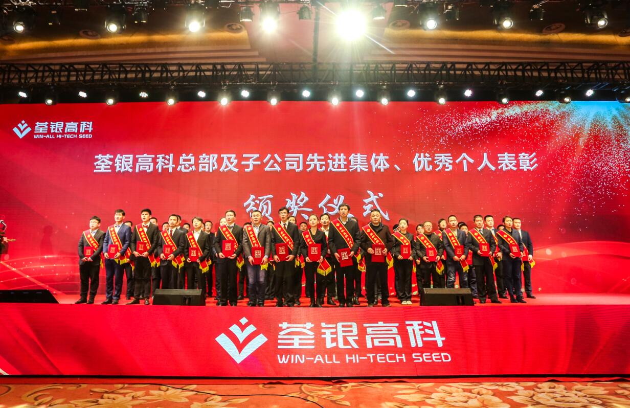 ? ? “我們自信前行,只爭(zhēng)朝夕,不負(fù)韶華,為荃銀發(fā)展而努力奮斗”!會(huì)議對(duì)荃銀高科總部及在肥子公司2019年度業(yè)績(jī)突出的先進(jìn)集體、愛(ài)崗敬業(yè)的優(yōu)秀個(gè)人進(jìn)行表彰頒獎(jiǎng),希望他們珍惜榮譽(yù),再創(chuàng)佳績(jī),并號(hào)召?gòu)V大員工以先進(jìn)為榜樣,增強(qiáng)責(zé)任感、使命感,自強(qiáng)不息,開(kāi)拓進(jìn)取。